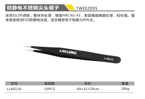 防靜電不銹鋼尖頭鑷子