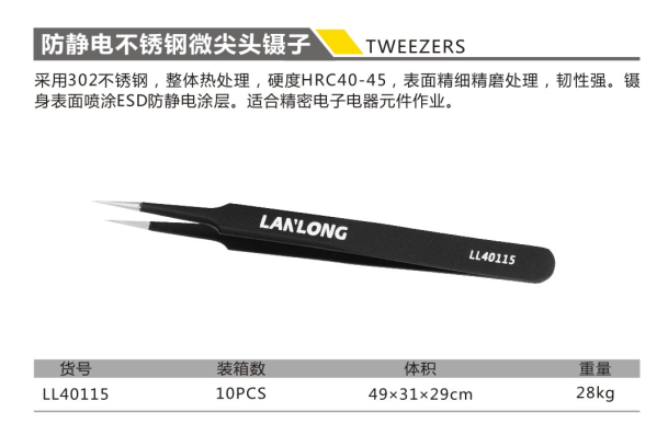 防靜電不銹鋼微尖頭鑷子