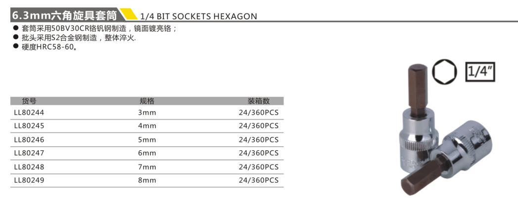 6.3mm六角旋具套筒