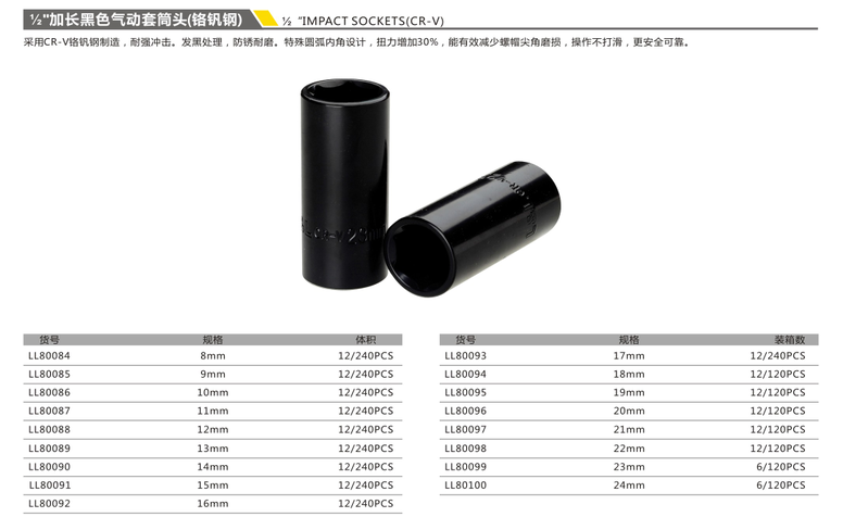 1、2“加長(zhǎng)黑色氣動(dòng)套筒頭(鉻釩鋼)