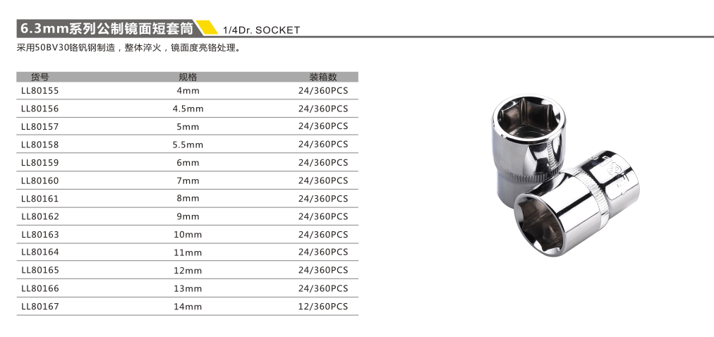 6.3MM系列公制鏡面短套筒