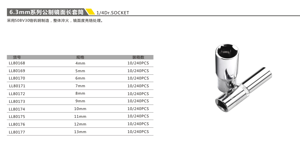 6.3MM系列公制鏡面長套筒
