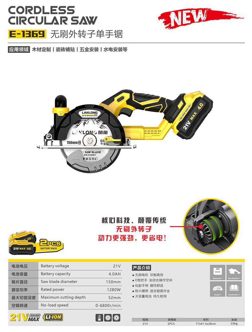 1369 鋰電無刷外轉(zhuǎn)子單手鋸